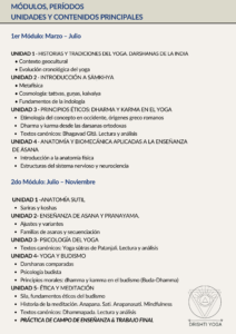 Dirigido a: El profesorado está dirigido a cualquier persona con un profundo interés. Nos comprometemos a acompañar la formación de educadores que deseen profundizar tanto en su práctica personal como en el estudio de las tradiciones filosóficas que nos sustentan, principalmente el yoga y el budismo. Es recomendable, aunque no excluyente, contar con un año de práctica de yoga postural.